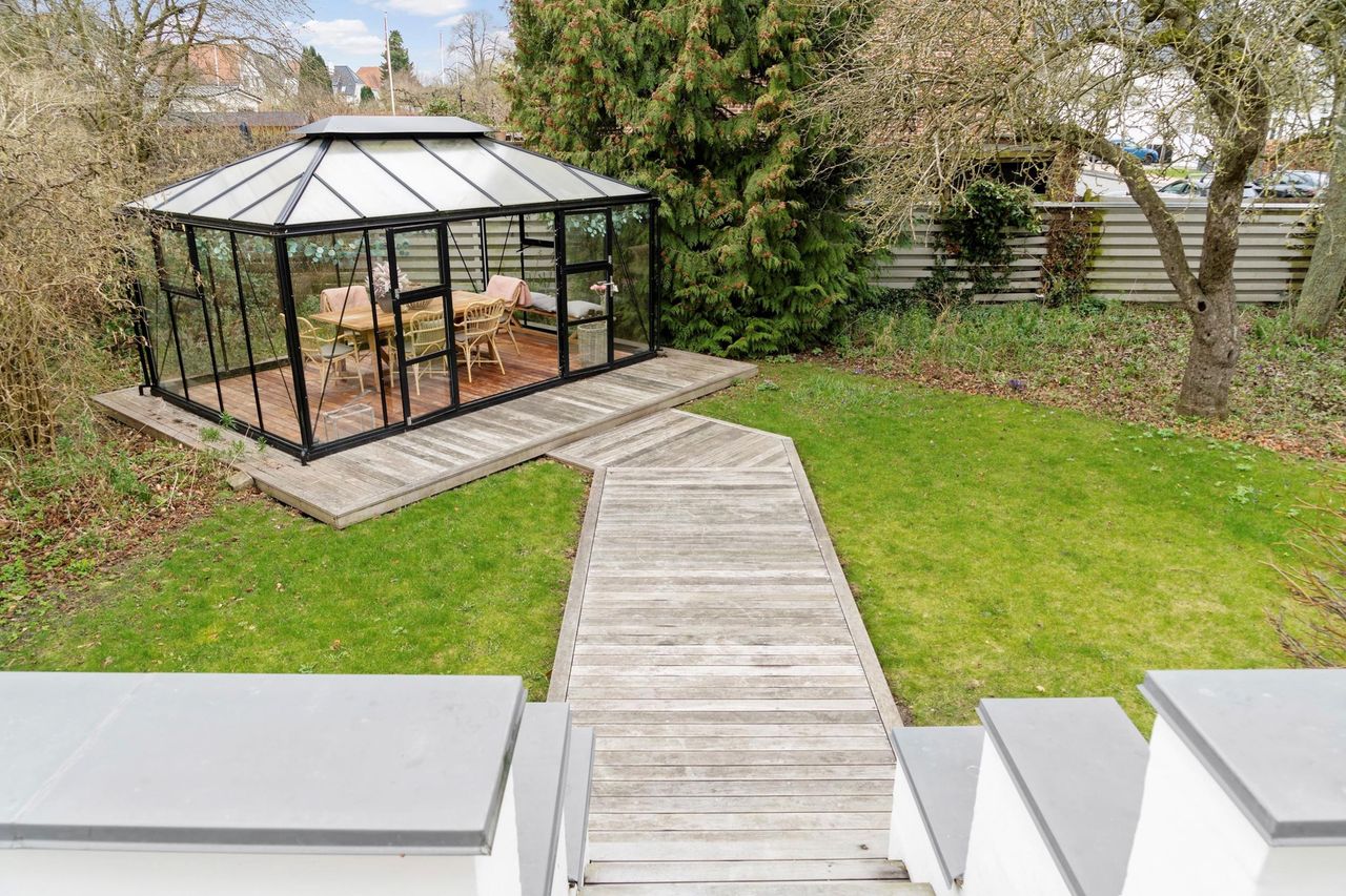 andet et vidunderligt orangeri, der er monteret på sin egen træterrasse og med gangsti i træ oppe fra