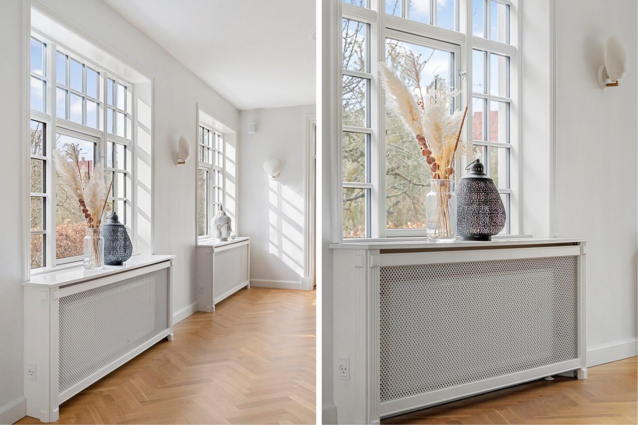 Snedkeren har sørget for, at radiatorskjulerne passer godt ind i helheden, ligesom I kan glæde jer over