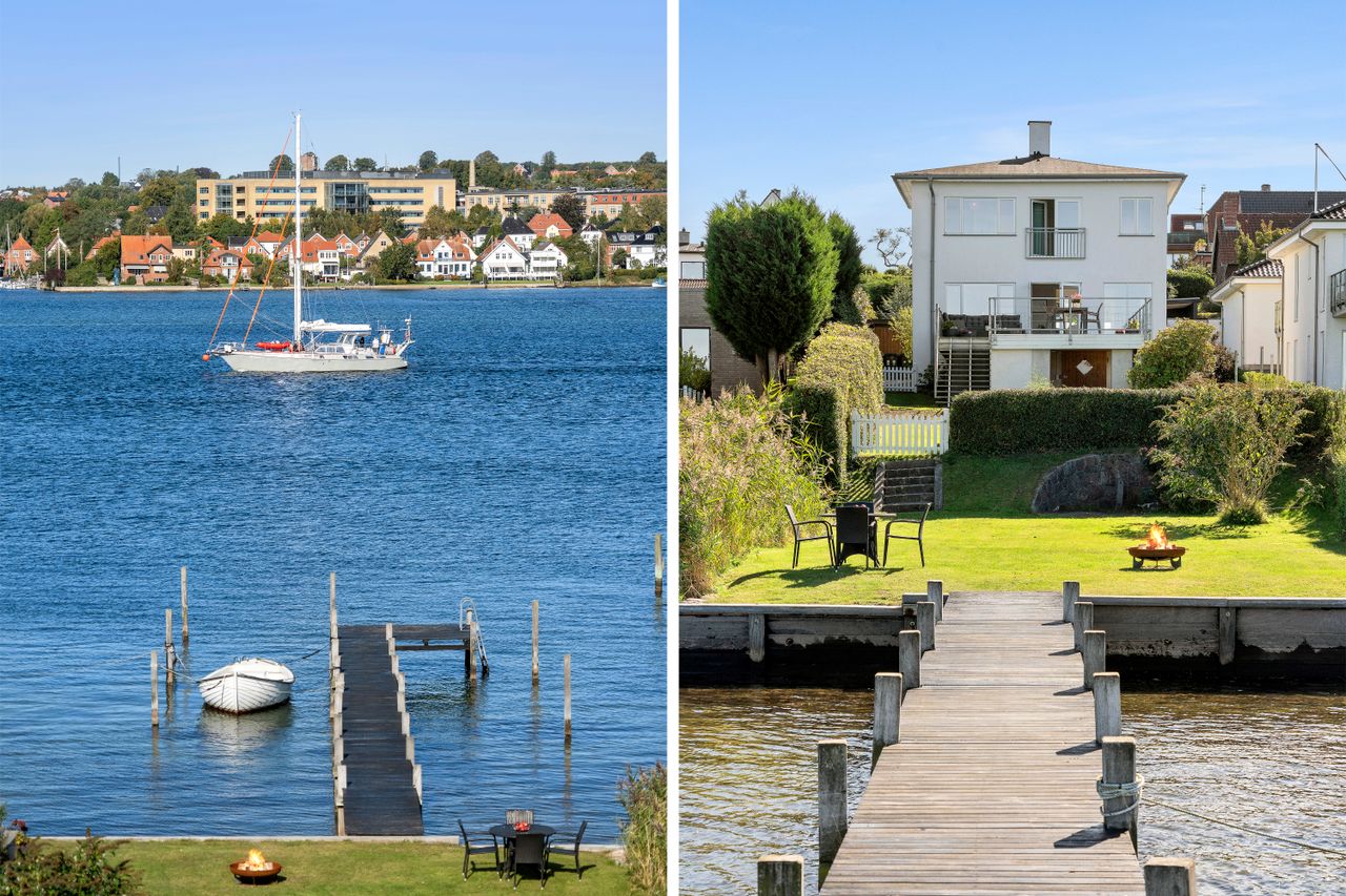 I kælderen er der desuden vaskerum, toilet og disponible rum af forskellige størrelser til opbevaring og andet. Grunden er på 939 kvadratmeter og vender for størstedelens vedkommende mod vandet, så I har optimale opholdsmuligheder, som vel at mærke er placeret så højt over vandniveauet, at her aldrig har været oversvømmelse.