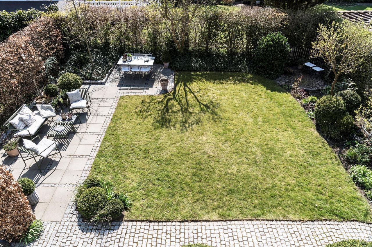 tre sider. Herfra er der en nyrenoveret trappe ned til en særdeles velanlagt have.