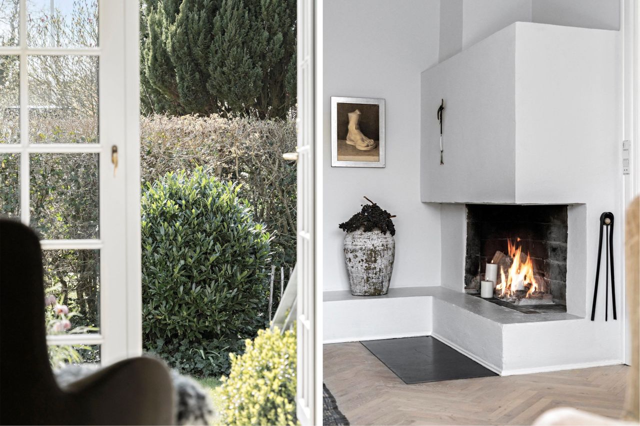 loftet, stuk og rosetter, ligesom pejsen i den ene stue kan bruges som en ekstra hyggefaktor. Køkkenet er