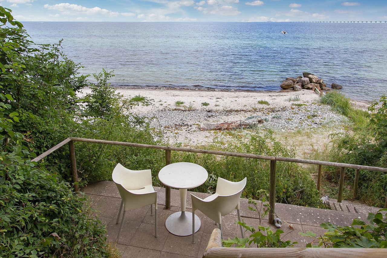 stor terrasse med imponerende 180 graders kik over Storebælt. Endvidere er der på 1. salen stort