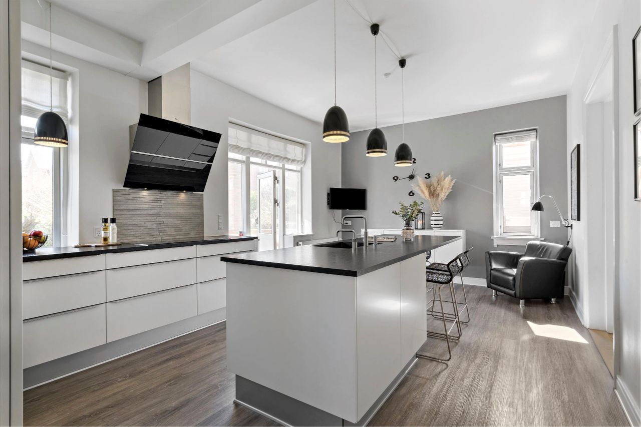 hele, og alt er udført med et sikkert blik for kvalitet. Alt står indflytningsklart og venter på, at næste familie