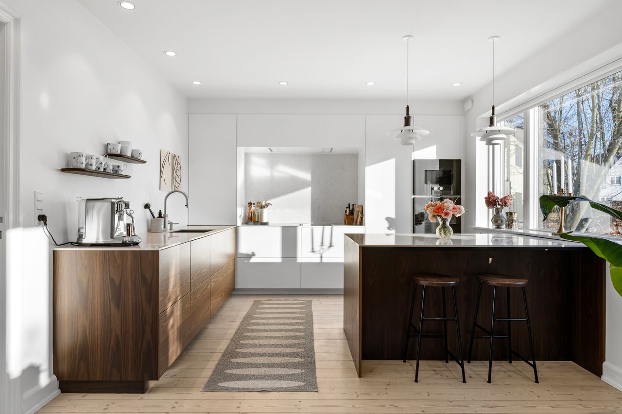 Det er også i stueplan, at boligens fælles opholdsrum er placeret. De består af et køkkenalrum med et uhyre lækkert kvalitetsmøblement fra Multiform, en tilstødende stue og udgang til en terrasse i trinløst niveau med alrummet og med trappe ned til resten af haven. Om sommeren fungerer dette skønne terrasseområde som et ekstra opholdsrum, hvor I kan opholde jer ganske ugeneret med hyggelig haveudsigt til blandt andet frugttræerne. Terrassen er lavet af hårdt træ, ligesom fliseterrassen nedenfor er velanlagt, så der ikke kommer ukrudt op mellem stenene. Haven er dejligt overkommelig at passe i hverdagen, dels på grund af sin størrelse og dels fordi den er gennemtænkt og praktisk anlagt.