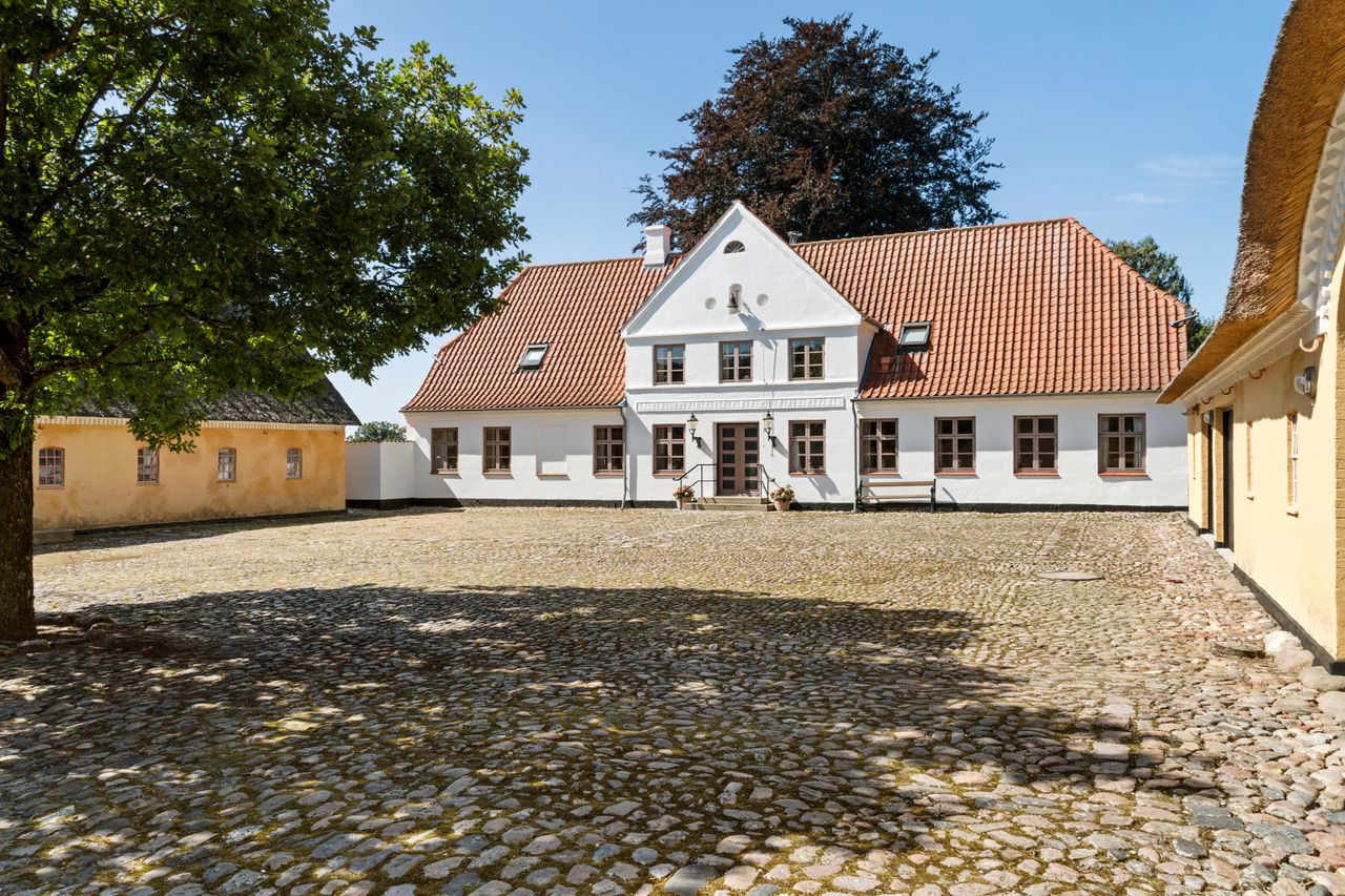 Næsten hele stueplan er dedikeret til fælles opholdsrum. I kommer ind i boligen midt på etagen, hvor der er et lille vindfang og en stor entré. Til den ene side er der en imponerende stor og alligevel hyggelig stue og et kontor ved siden af, mens der til den anden side for entréen er spisestue og køkken med viktualierum. Her vil I opleve den samme varme og harmoniske atmosfære. Desuden er der et badeværelse i stueplan. Det er der også ovenpå i værelsesafdelingen, hvor I kan se frem til en reposstue midt på etagen og tre værelser af forskellig størrelse. Det største er på 46 kvadratmeter, så her kan blive et anstændigt soveværelse. I får også en selvstændig bolig med badeværelse og flere værelser, som de nuværende ejere har anvendt som bestyrerbolig, og som også kunne være mormorbolig eller benyttes til andre formål. Den ligger i den ene af gårdens tre længer foruden stuehuset og i en af de andre er der kontor og garage. Desuden lader, stalde og et hønsehus, så I også kan sikre jer friske æg til morgenmaden eller frokostomeletten.