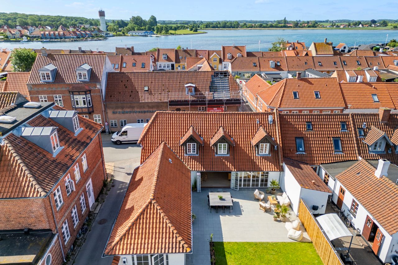 Det første, der møder jer på Vestergade 22 i Kerteminde, er et klassisk udseende byhus, der ligger på et hjørne, så man lægger ekstra meget mærke til det. Det er malet i en flot rød farve, og der er ikke færre end tolv hvidmalede vinduer med sprosser ud til gaden plus vinduerne fra tagetagen, hvilket signalerer historisk dansk hygge i topklasse. Den fint malede hoveddør er med til at sætte en tyk streg under husets historiske arv og betydning.
